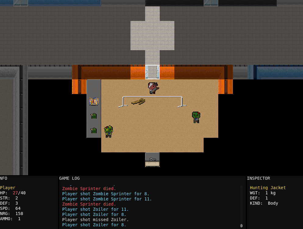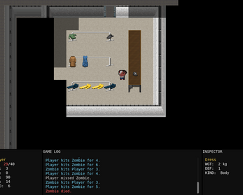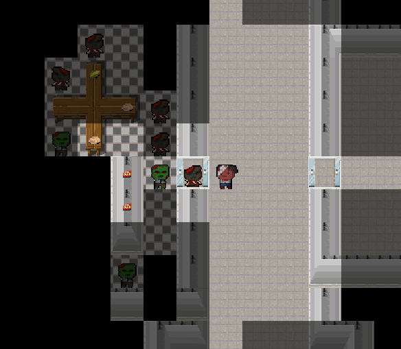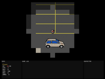 Your car runs out of gas just as you arrive at a zombie infested shopping mall. In order to make it to your destination, you must brave the dangers of the mall and find enough gasoline and food to make the drive. Be thorough! Food can heal you, but don't eat too much or you won't make it.